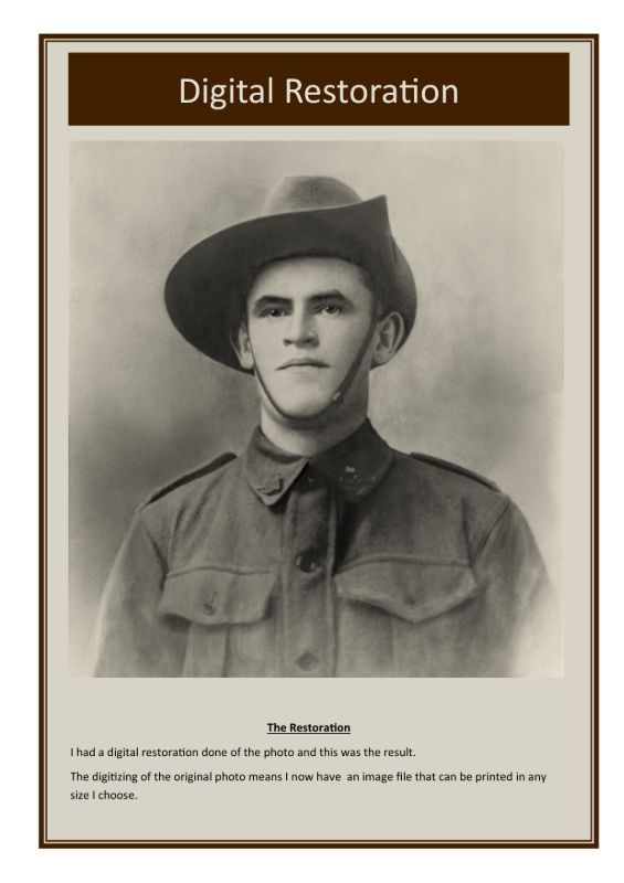 The mission was to restore the photo and see if the soldier could be identified. If he was identified, we would do a A.I.F. Heritage Tree Tree to learn about the soldier’s life before enlistment.