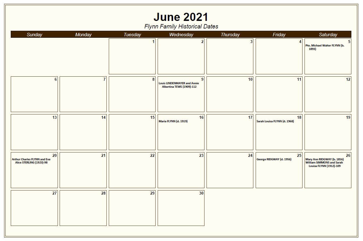 My Family History Australia Historical Calendars shows birthdays, anniversaries and special events across multiple generations of your family history.